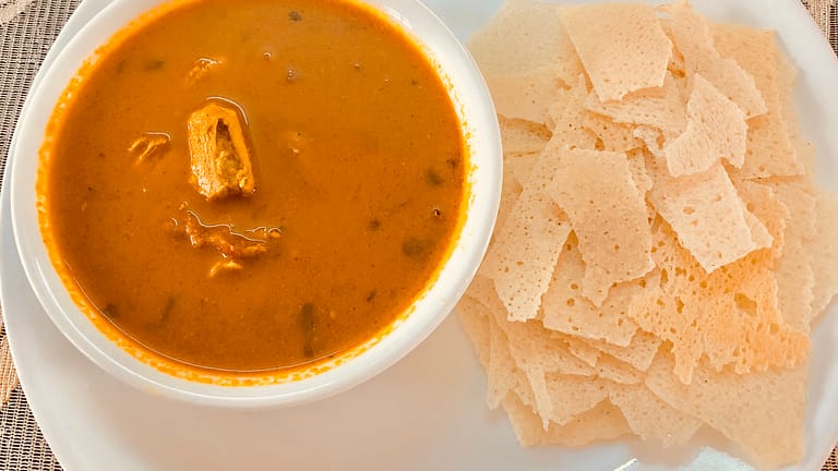 Chicken Curry with Crispy Rice Roti
