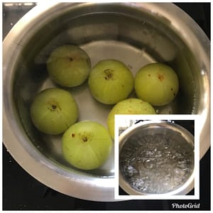 - In a pan boil water, switch off the flame. Now add in the amlas to the boiled water and keep it immersed for 10 – 12 minutes.