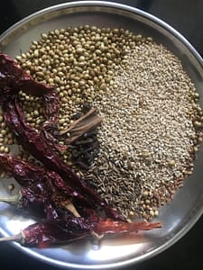 - Grind them to a fine paste along with tamarind paste, jaggery, 2 cloves of garlic and salt. Keep aside.