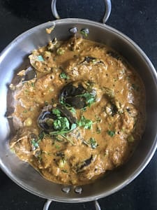 This is a Brinjal preparation I first tasted at my neighbour’s place. She was kind enough to give me the recipe. The coconut based gravy blends very well with the brinjals. A typical South Indian preparation.