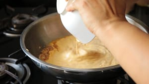 - Reduce the flame and add the curd mixture stirring continuously. Bring it to boil.