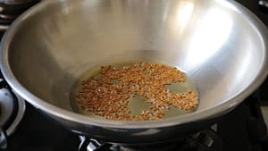 - Heat oil in a pan and add the fenugreek seeds. Fry on a low flame till it becomes dark. Put off the flame. Separate the seeds from the oil by tilting the pan and discard the seeds. This method infuses the flavour of the seeds into the oil.