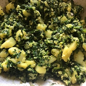 A healthy traditional Mangalorean simple vegetarian dish using fenugreek leaves, potatoes and freshly grated coconut.