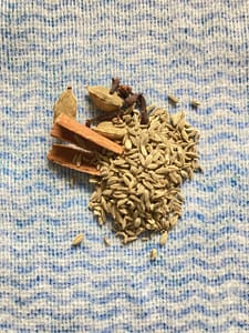 Put the ingredients in a piece of muslin cloth fold in and secure the cloth with a knot or you can even tie it with a string and cook it along with the chana.