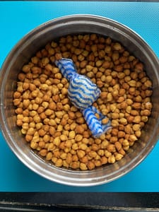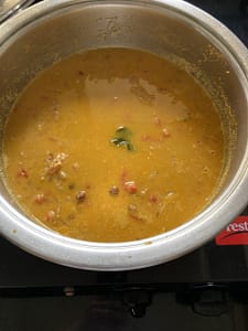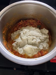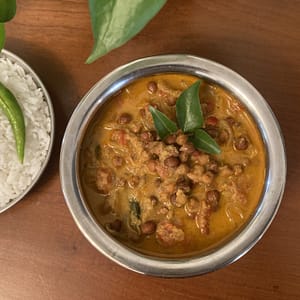 Add the boiled chana and stir, then add the coconut water and bring to boil. Add the salt.