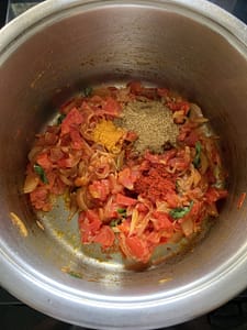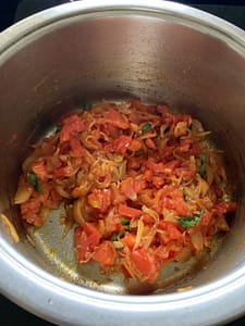 Next add in the chopped tomatoes and cook for about 4-5 minutes or until it becomes mushy.